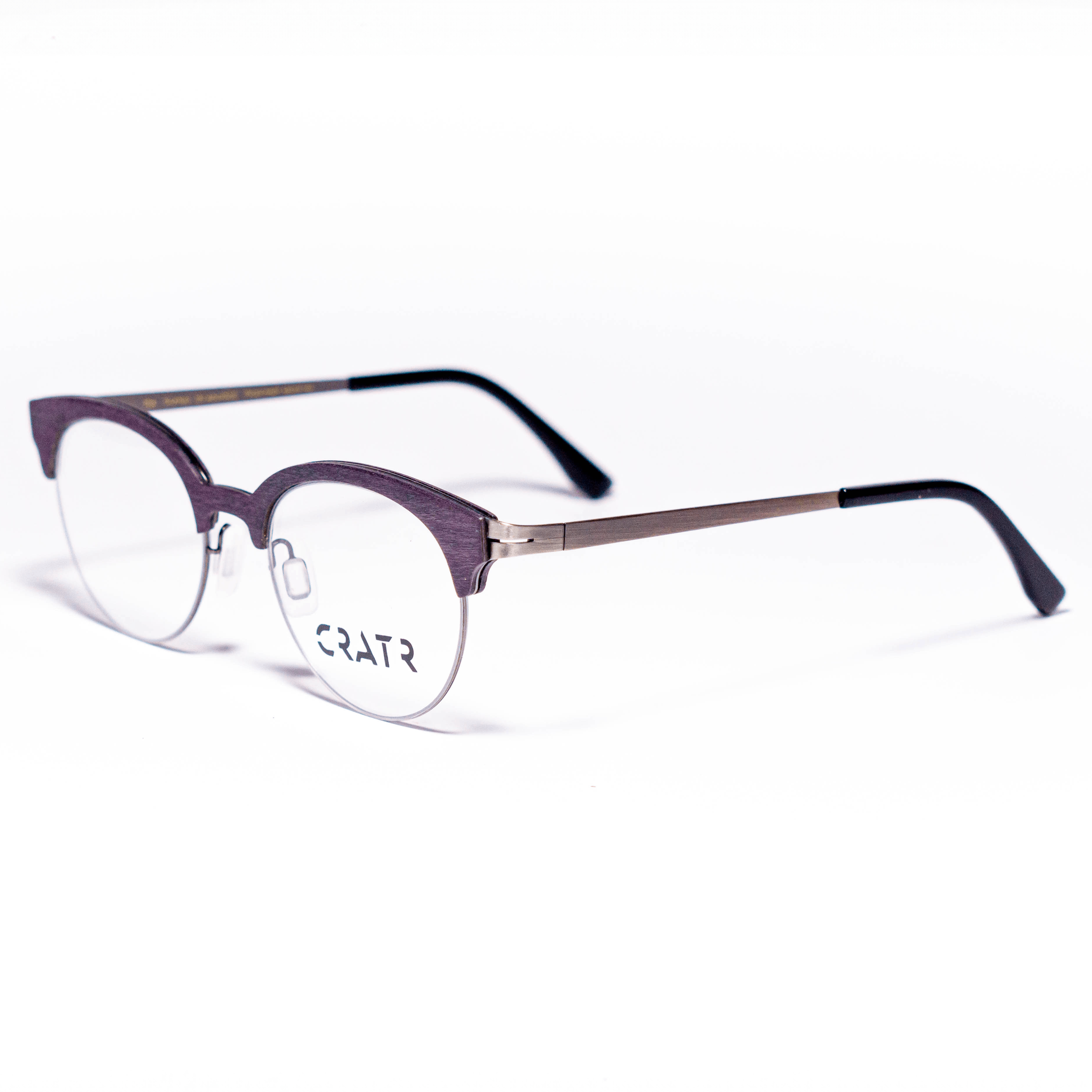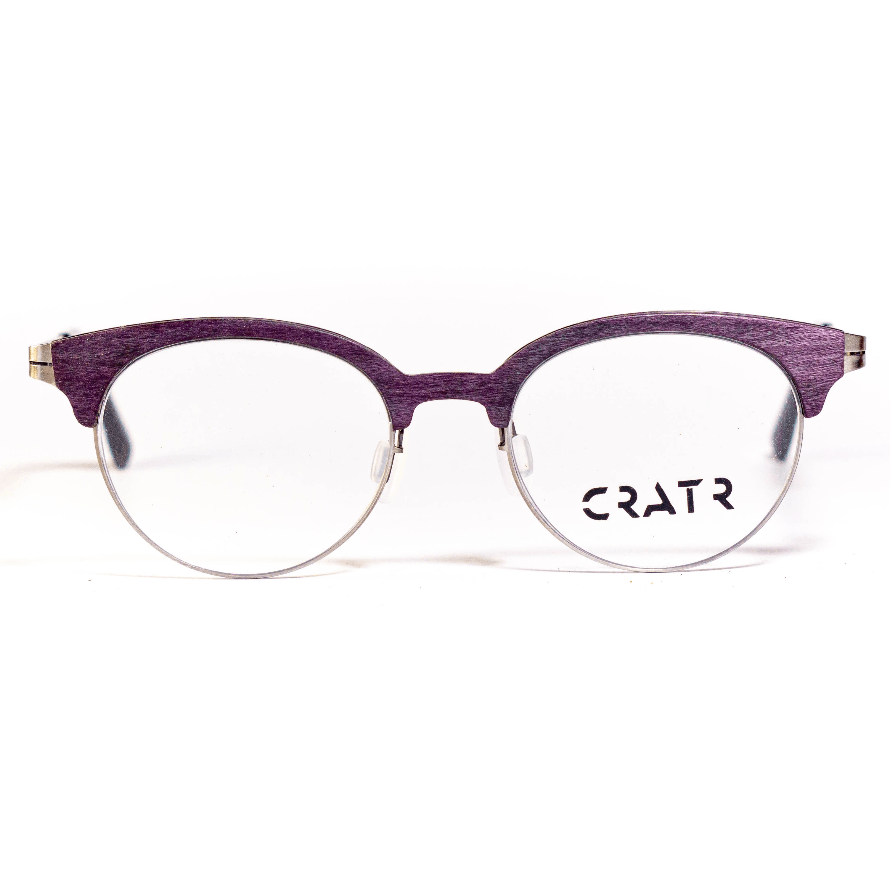 Introducing the CRATR TIA – THANKS IN ADVANCE eyeglasses for men and women. Featuring oval-shaped frames that put a fresh spin on the classic Clubmaster style, these eyeglasses offer a timeless yet distinctive look. The purple frame is designed to accommodate a variety of lenses, while adjustable metal nose pads and temples ensure a comfortable fit. Made from a combination of wood and stainless steel, these glasses blend durability with sleek, modern design.